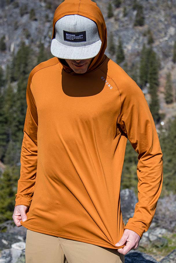 This shirt is supper light weight. Has some serious ventilation keeps me super cool. And the shirt fit is perfect. Fits loose where needed but still more athletic for a closer less baggy look.